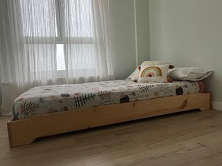 Cama Montessori de madera de Lufe, apilable. - Fabricada en madera de pino. - Diseño apilable para optimizar espacio. Tengo dos y están apenas sin usar. El precio que aparece es de una unidad. Para comprar los dos, podemos llegar a un acuerdo.
