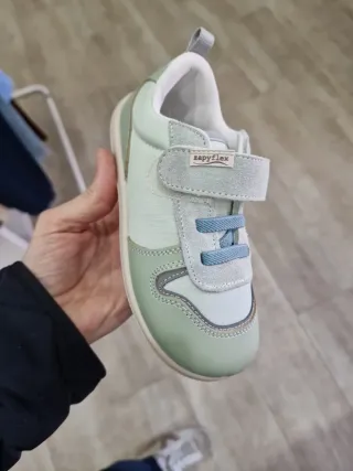Zapatilla Zapyflex en color verde, estilo barefoot. Cierre de velcro y cordones. Tallas: 28,29 - Color verde menta - Cierre de velcro y cordones. - Etiqueta de la marca Zapyflex.