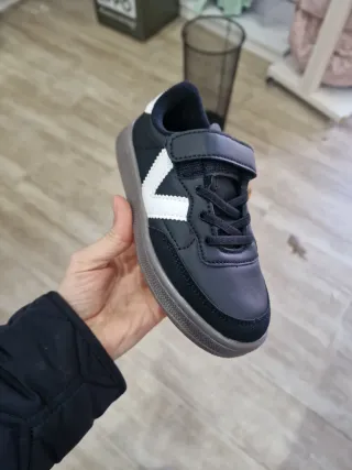 Zapatilla de la marca Victoria en color negro. Cierre de velcro y cordones. Talla 29,31,33,34 - Exterior de piel sintética y ante. - Suela de goma. - Detalle de la V en blanco.