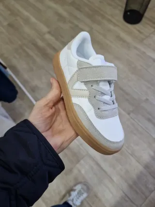 Zapatilla Tallas: 28,29,30,31 - Color beige claro con detalles dorados. - Cierre de velcro. - Material exterior de ante. - Suela de goma blanca.