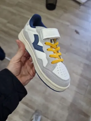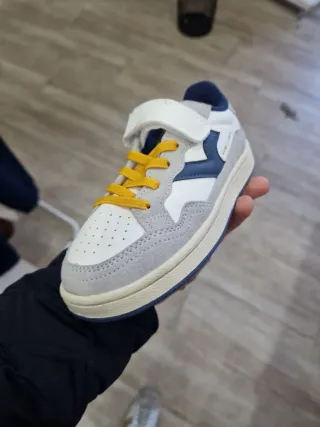 Zapatilla de ante azul con detalles blancos. Tallas: 23,24,30,31,32 - Cierre de velcro y cordones. - Suela blanca. - Detalle de logo en la lengüeta.
