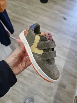 Zapatillas Victoria de color kaki. tallas 29,31,32 - Cierre de velcro. - Suela de goma naranja. - Detalle de logo en la lengüeta.