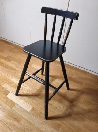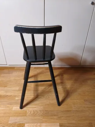 Silla alta de madera en color negro, ideal para niños. Diseño clásico de Ikea. - Patas estables. - Respaldo con barrotes.