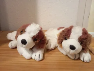 2 Peluches Perro Marrón y Blanco