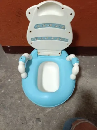Orinal infantil de color azul con un divertido diseño de vaca en la parte frontal. Cuenta con asas laterales para mayor seguridad. - Diseño de vaca. - Asas laterales.