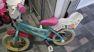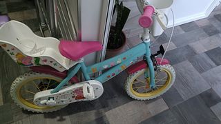 Bicicleta infantil con diseño de Peppa Pig, ideal para los más pequeños. - Color azul y rosa. - Ruedines incluidos. - Cesta delantera. - Asiento trasero.