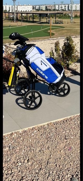 Set de palos de golf Cobra Fly XL en excelente estado, como nuevos. Ideales para mejorar tu juego. - Incluye bolsa de golf Cobra. - Carro de golf de tres ruedas. - Fundas protectoras para los palos. -grafito -está nuevos comprado todo en julio
