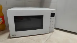 Microondas LG en color blanco. Diseño moderno y compacto. - Puerta con cristal negro. - Panel de control digital. Para piezas o para arreglar(no calienta) Me dijeron que el arreglo no cuesta mucho,pero yo no entiendo de electrónica y no sé cambiarlo