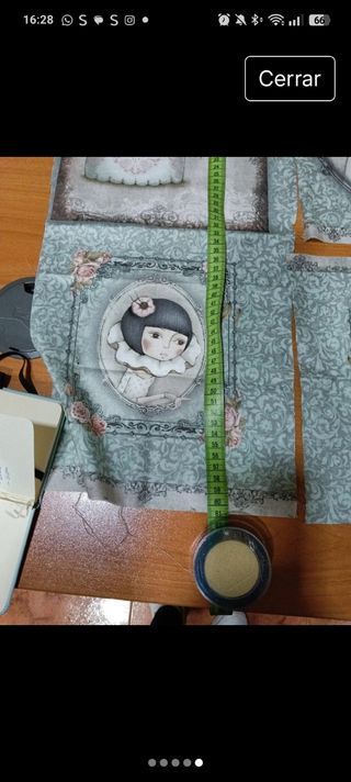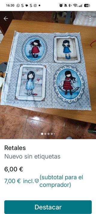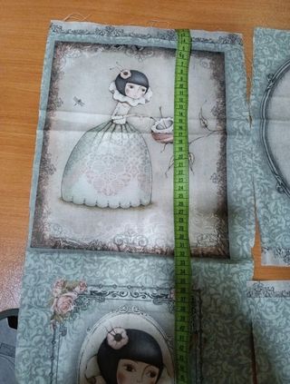 Lote de retales de tela con estampados de muñecas. - Diseños variados. - Ideal para manualidades y costura.