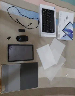 Tablet UJJ U3 en color azul, con sistema operativo Android. - Incluye teclado. Sin usar - Incluye ratón. Un Adaptador - Incluye funda protectora. - Incluye protector de pantalla.