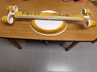 Lámpara de techo de tubos fluorescente.con un diseño floral pintado a mano. - Base redonda de cerámica con borde decorativo. - Barra central de cerámica con motivos florales. - Cubre portalámparas de cerámica todo Ello hecho y pintado a mano, cerámica andaluza .