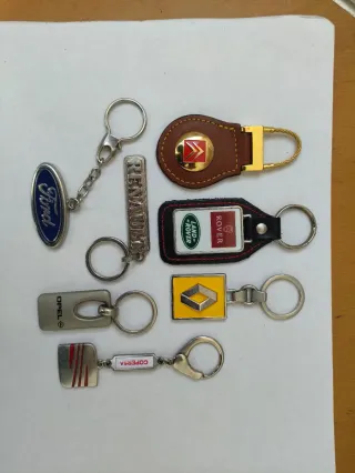 Lote de 7 llaveros de diferentes marcas de coches, ideales para coleccionistas o amantes del motor. Son de los años 90. - Llavero Ford - Llavero Renault - Llavero Citroën - Llavero Land Rover - Llavero Opel - Llavero Seat - Llavero con logo de Renault