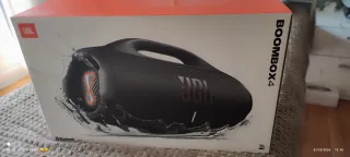 Altavoz portátil JBL Boombox 4 en color negro. Diseñado para ofrecer un sonido potente y una gran durabilidad. - Diseño robusto y resistente al agua. - Asa integrada para facilitar el transporte. - Conexión Bluetooth para reproducir tu música.