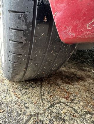 Llanta Mazda 3 del año 2015 18” tornillería 5x114,3. 7Jx18. ET50. Medidas 225/40/r18 92y con neumático Continental contisport contact 5 (para cambiar) Lo que se ve en la foto es solo suciedad SIN RAYAZOS