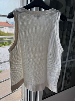 Jersey de punto calado con diseño de crochet. - Diseño floral. - Acabado en pico en la parte inferior. - Tejido ligero y transpirable.
