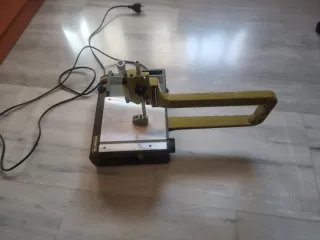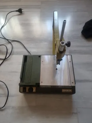 Sierra de marquetería Proxxon en buen estado. Ideal para trabajos de precisión. - Marca: Proxxon - Color: Verde y plateado - Incluye interruptor y dial de control.