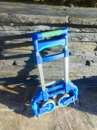 Carrito plegable muy práctico para transportar objetos. Su diseño permite guardarlo fácilmente. - Estructura metálica. - Empuñadura de plástico.