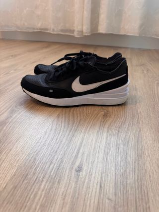 Zapatillas deportivas Nike con un diseño moderno y cómodo. - Combinación de colores negro y blanco. - Detalle del icónico swoosh de Nike.