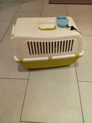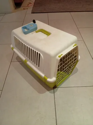 Transportín para animales pequeños, ideal para viajes o visitas al veterinario. Cuenta con ventilación en los laterales y una puerta frontal, que necesita pintarla. También tiene una correa extensible -Desmontable - Asa superior para un fácil agarre. - Cierre seguro. - Diseño práctico y ligero.