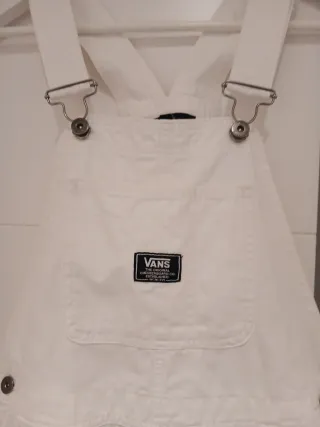 Peto de la marca Vans en color blanco y talla S. - Tirantes ajustables. - Bolsillo en el pecho con etiqueta de la marca. - Cierre lateral con botones.