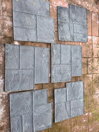 Conjunto de moldes para crear superficies de hormigón impreso con un diseño de piedra natural. - Diseños variados para imitar piedra. - Ideales para patios, caminos y muros.moldes de 60x60cm 5 duros y uno blando. Estampado de hormigon
