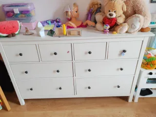 Cómoda de la serie Hemnes de IKEA, con un acabado en tinte blanco y unas dimensiones de 160x96 cm. - Amplio espacio de almacenamiento. - Diseño clásico y elegante. - Sin golpes ni rozaduras - En algunos puntos se nota el color de la madera como suele pasar en los muebles de pino de Ikea.