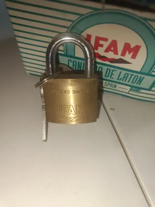 Candado de latón IFAM modelo K-40, fabricado en España. Incluye dos llaves por candado. - Cuerpo de latón. - Arco de acero endurecido. - Modelo K-40. - caja de doce candados nuevos a estrenar. - 6€ la unidad.