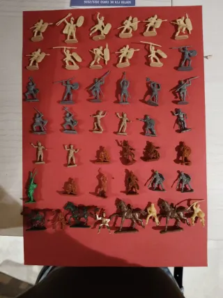 Lote de figuras de plástico Montaplex. - Figuras de vaqueros, indios y jinetes - Variedad de colores: verde, azul, marrón, rojo y amarillo. - Ideal para coleccionistas o para jugar.