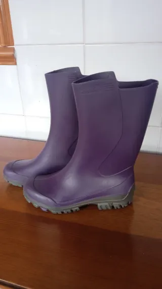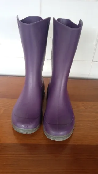 ¡Ideales para el cole, el campo o días de lluvia! Vendo estas botas de agua de la marca Solognac en color morado. Son extremadamente ligeras y cómodas, perfectas para que los peques no se cansen al caminar. Talla: 31/32 (Equivale a un 12/13 UK). Medida suela: 20,50 cm exactamente. Estado: Muy buen estado, suela con dibujo intacto para evitar resbalones. Limpieza: Súper fáciles de lavar, basta con un manguerazo o un paño húmedo. Extra: Tienen un relieve en el talón que ayuda a quitárselas sin usar las manos. Las vendo porque se han quedado pequeñas, pero tienen muchísima vida por delante.