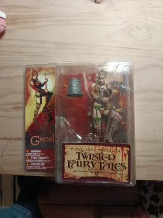 Figura de acción de Gretel de McFarlane Toys, parte de la línea Twisted Fairy Tales. Incluye accesorios. - Figura de Gretel. - Cubo metálico. - Base con diseño de cuento.