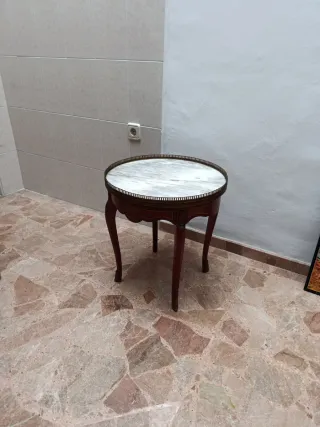 Mesita auxiliar redonda mármol y madera