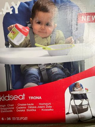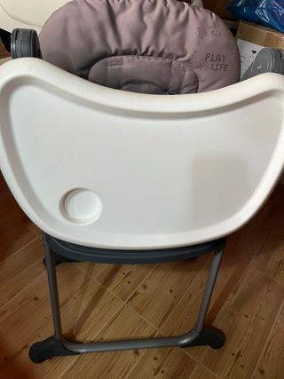 Trona para bebé con un diseño moderno y funcional. Perfecta para las comidas y momentos de juego. - Cojín acolchado. - Bandeja extraíble. - Estructura metálica. - Cesta inferior.