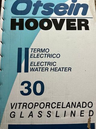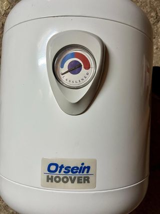 Termo eléctrico de la marca Otsein Hoover con una capacidad de 30 litros. Diseñado para ofrecer agua caliente de manera eficiente. - Capacidad: 30 litros. - Marca: Otsein Hoover. - Indicador de temperatura.