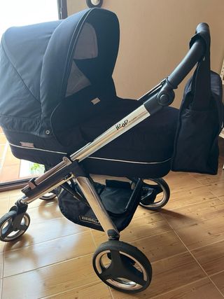 Conjunto de cochecito, capazo y silla de paseo Bebecar Ipop Evolution. - Chasis de aluminio. - Capazo espacioso. - Silla de paseo reversible. - Incluye bolso. - Ruedas todoterreno.