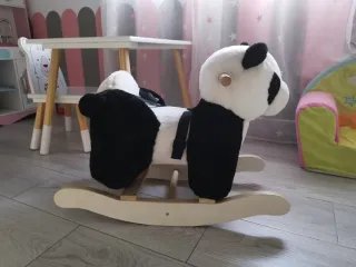 Divertido oso panda balancín de peluche para los más pequeños. Suave y seguro para jugar. - Diseño de panda. - Base de madera. - Peluche suave.