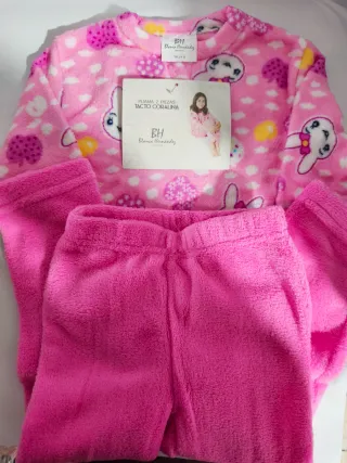 Pijama de dos piezas para niña de tacto coralina. Restos de tienda. Talla, 4 y 5 del dibujo del cocodrilo. Talla 3 del dibujo del gatito. - Diseño estampado. - Marca BH Blanca Hernández. - Tejido suave y cálido.