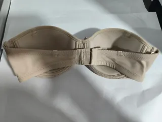 Sujetador sin tirantes en color beige. - Diseño liso. - Cierre trasero. - Detalle de lazo pequeño en el centro. Dos tipos de tirantes , beige y transparente.