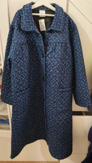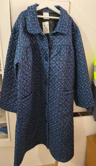 Bata larga acolchada con estampado floral. - Cierre de botones. - Cuello camisero. - Dos bolsillos delanteros. Restos de tienda.