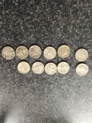 Conjunto de monedas americanas antiguas. - Diseño de búfalo en el reverso. - Rostro de nativo americano en el anverso.