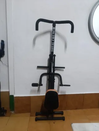 Máquina de ejercicio Total Crunch en buen estado. Ideal para tonificar el cuerpo. - Estructura metálica. - Asiento acolchado (tiene una pequeña grieta, que se ve en las fotos). - Los mangos de gomaespuma son nuevos. Si se hace envío, habría que desmontar, para reducir el volumen.