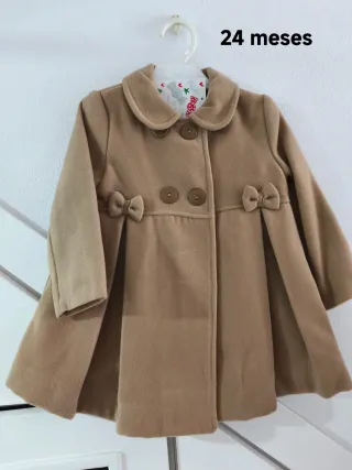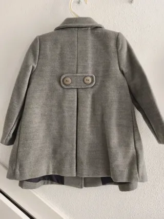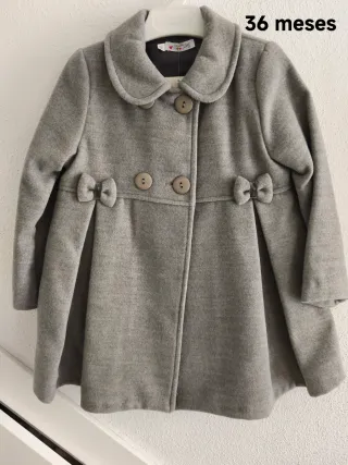 Abrigo de niña en color gris, talla 36 meses. Diseño clásico con cuello redondo y cierre de botones. - Dos filas de botones. - Adornos de lazo en los laterales. - Tejido suave y cálido. Marca Alber Restos de tienda