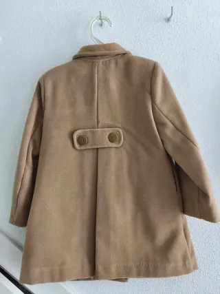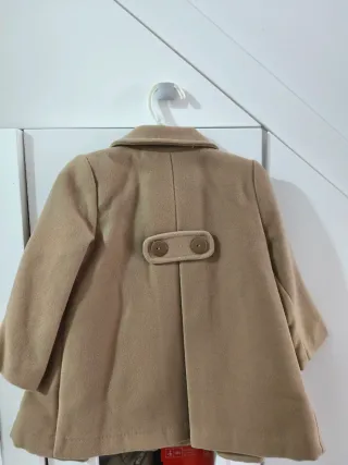 Abrigo de niña en color beige, ideal para mantenerla abrigada con estilo. - Diseño clásico con cuello - Dos botones decorativos en la espalda - Corte acampanado Marca Alber. Restos de tienda.
