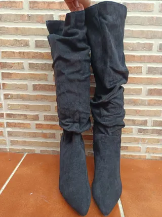 Botas de caña alta con un diseño moderno y elegante. - Material: Ante. - Color: Negro. - Estilo: Caña alta.
