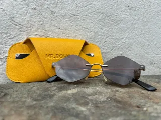 Gafas de sol con un diseño moderno y elegante, perfectas para complementar tu estilo. - Montura con detalles dorados. - Lentes de color marrón. - Incluye funda protectora amarilla.