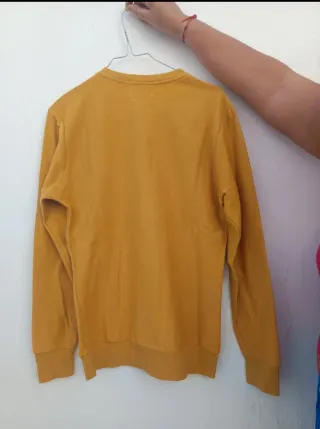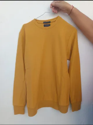 Jersey de manga larga en color amarillo mostaza. Presenta un tejido con textura sutil. - Cuello redondo. - Puños y bajo elásticos.