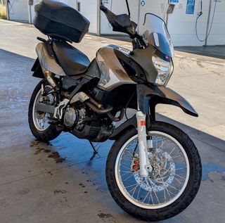 Moto Aprilia Pegaso Trail en color negro y gris de 2006 - Estilo adventure. - Transmisión manual. - Indicador de marcha engranada - Conexión Usb - 35.000 km - ITV hasta 2027