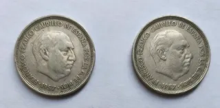 Monedas de 25 pesetas de la época de Franco. - Año: 1957, * 58 * 61 - Anverso: Retrato de Francisco Franco Caudillo de España. - Reverso: Escudo de España de aquella época. Son monedas con gran valor. Una está valorada en 185€, la otra en 65€, por páginas especializadas. Yo vendo las dos por 200€. Ver bien las fotos, pues no hago devoluciones.