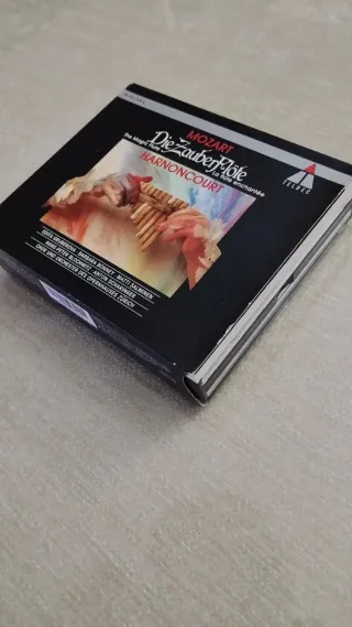 Edición en CD de Die Zauberflöte de Mozart, dirigida por Harnoncourt. - Intérpretes: Edita Gruberova, Barbara Bonney, Matti Salminen, Hans-Peter Blochwitz, Anton Scharinger. - Coro y Orquesta de la Ópera de Zúrich. - Grabación digital.
