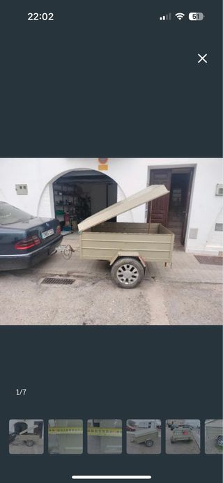 Remolque cerrado de color beige, ideal para transportar equipaje o materiales. - Eje con suspensión. - Rueda de repuesto. - Cerradura en la tapa. Tiene docuenntacion,se puede entregae pintado Medidas 1,60x1,20