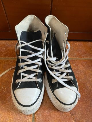 Zapatillas altas Converse de color negro con plataforma. PRECIO FIJO NO NEGOCIABLE. - Diseño clásico de caña alta. - Suela blanca con plataforma. - Cordones blancos.